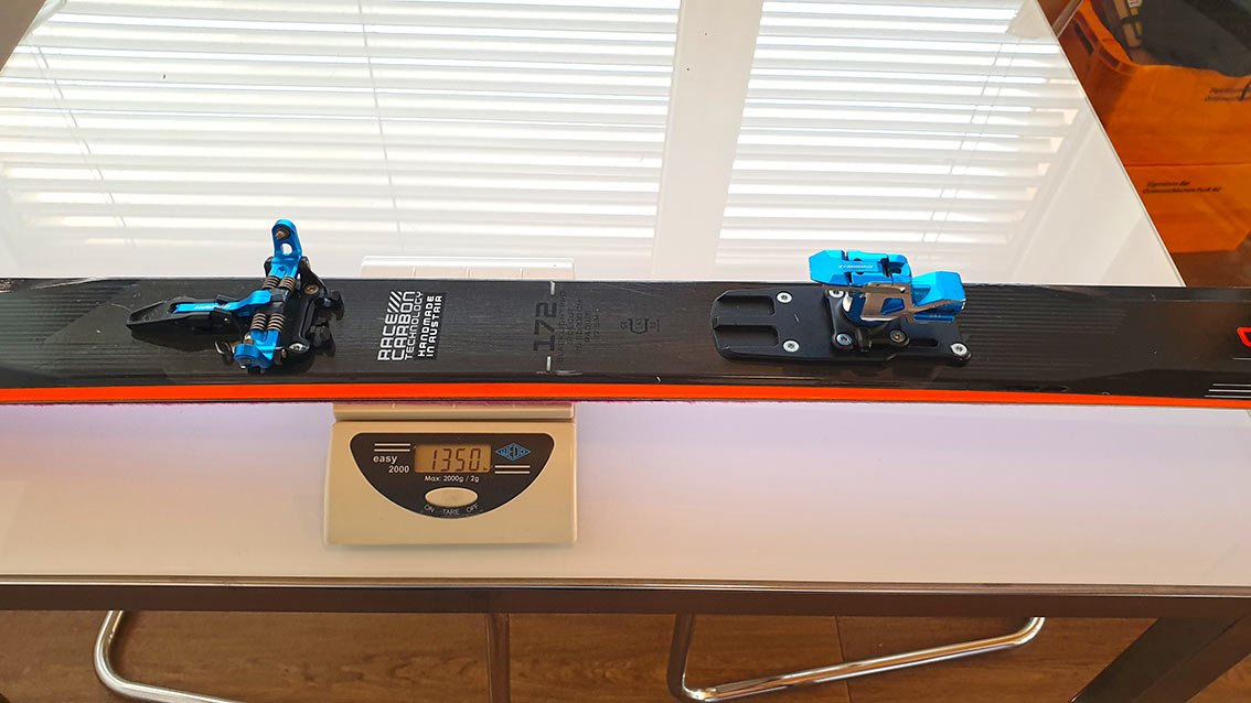 Dynafit ist dieser Spagat mit dem Blacklight Pro wirklich gut gelungen! Der uns zur Verfügung gestellte 172 cm lange Ski bringt inklusive Fell und Superlite 150 Pin Bindung mit Verstellplatte nur 1350 Gramm auf die Waage - das ist für so ein Komplettpaket schon eine gewaltige Ansage. Naturgemäß muss irgendwo Gewicht eingespart worden sein - bei der Konstruktion des Skis, bei der leichten, aber doch sehr stabilen Superlite 150 Bindung und sogar beim Skifell. Der Ski bietet aber mit 116-80-100 auch im tiefen Pulverschnee einen sehr guten Abfahrtsgenuss.