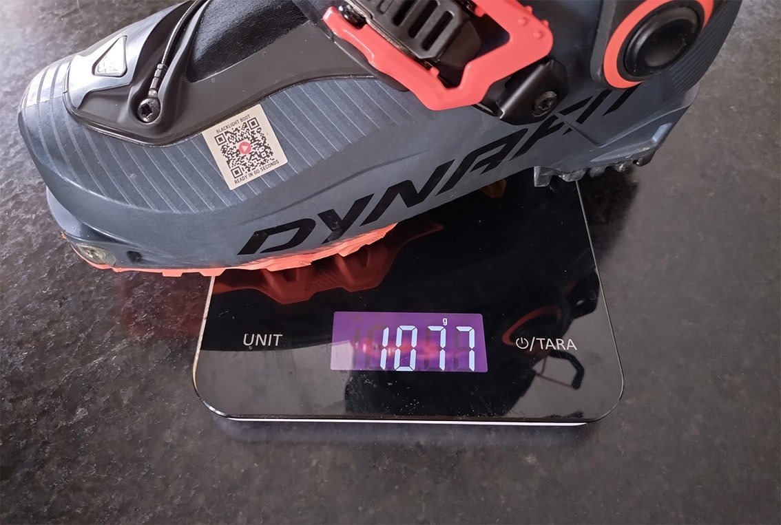 Kommen wir zum Gewicht: Der TLT X wiegt bei uns auf der Waage 979 Gramm, der Blacklight Boot mit dem deutlich komplexeren Hoji-Lock-System bringt es auf 1.077 Gramm (immer Größe 24.00). Dieser Unterschied ist für uns aufstiegsorientierte Tourengeher – vor allem im Hinblick auf die deutlich bessere Abfahrtsperformance des Blacklight Boot – problemlos zu verschmerzen. Es sind nur wenige Gramm mehr, dafür hat man einen wirklich guten, leichten Abfahrtsskitourenschuh am Fuß. Der Blacklight Boot verfügt außerdem über eine vordere Schuhkante (das war bei den TLT-Modellen nicht immer der Fall), die Montage eines Bügelsteigeisens ist somit überhaupt kein Problem.