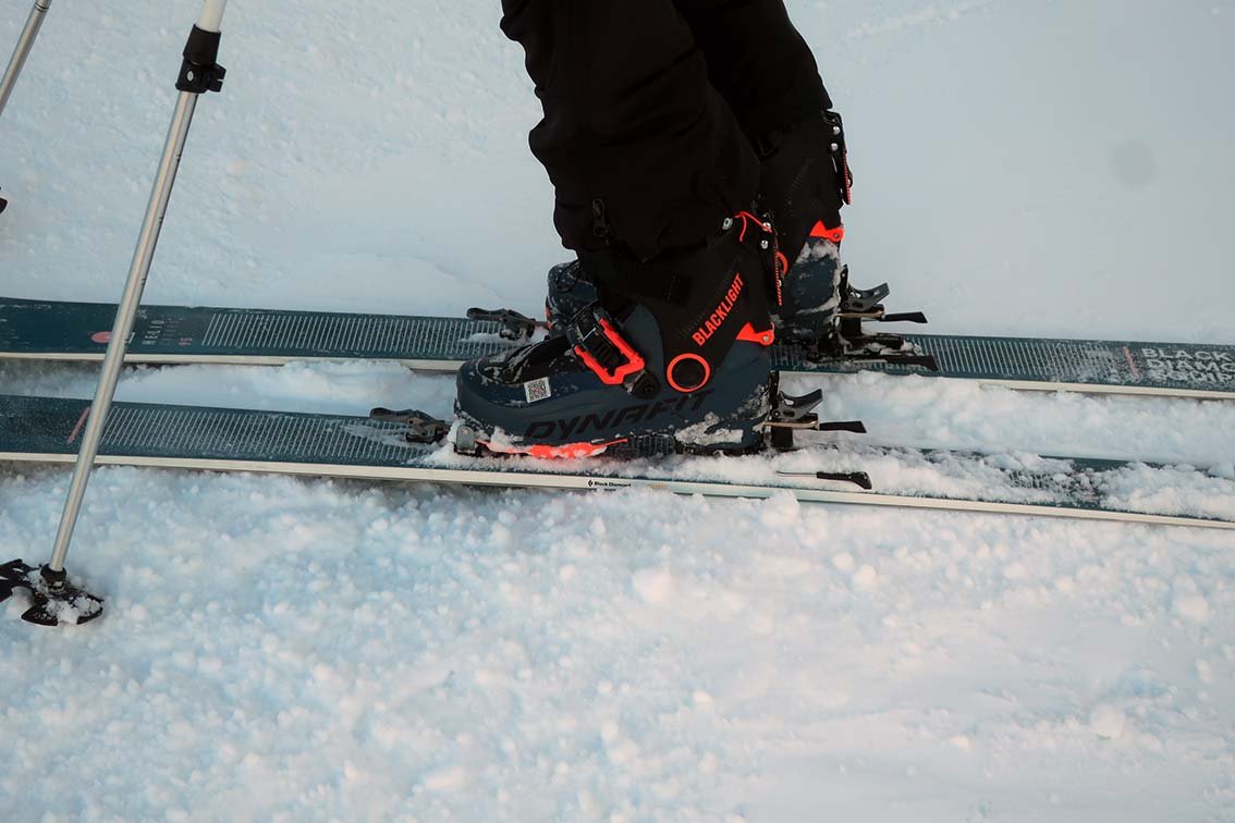 Wie bei den früheren TLT-Modellen braucht es etwas Eingewöhnung, bis man die Einstellungen so gefunden hat, dass sich der Blacklight Boot schnell und intuitiv schließen lässt. Hat man jedoch einmal verstanden, in welcher Position die Schnallen – wobei die obere eigentlich eine Mischung aus Schnalle und Strap ist – stehen müssen, geht das Fixieren ruckzuck. Danach steht man deutlich stabiler im Blacklight Boot als in einem klassischen TLT und hat spürbar mehr Kontrolle über den Ski bei der Abfahrt. Wir nutzen den Blacklight Boot in Kombination mit dem Helio 95 Carbon Ski und sind damit überaus zufrieden.