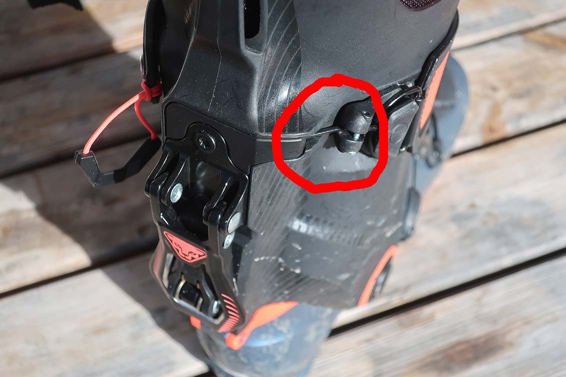 Hoji-Lock-System – für alle, die nicht wissen, was das ist: Beim Wechsel vom Aufstieg in die Abfahrt wird nicht mehr nur hinten ein Bügel heruntergeklappt. Stattdessen greift der obere Skitourenschuh-Schaft (also der Bereich mit der oberen Strap-Schnalle und dem Strap) formschlüssig in den unteren Skitourenschuh-Schaft (unterhalb des Geh-Gelenks) ein. Diese beiden Teile werden durch eine spezielle Konstruktion – entwickelt vom Kanadier Eric „Hoji“ Hjorleifson – miteinander verbunden und verleihen dem Skischuh deutlich mehr Steifigkeit für die Abfahrt.