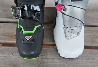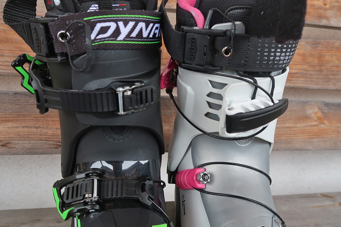 Im Vergleich zum Vorgängermodell TLT7, mit dem wir auch lange unterwegs waren, gibt es beim TLT8 wieder das bewährte 2 Schnallen-System (und keinen Seilzug). Die Schnallen machen eine wirklich hochwertigen Eindruck, selten findet man solch gut gemachte Buckles an Skitourenschuhen. Fixiert für die Abfahrt wird das ganze durch das Schließen der oberen Schnalle, welche mit einer Art „Dorn“ den Schaft mit der unteren Schale verbindet.