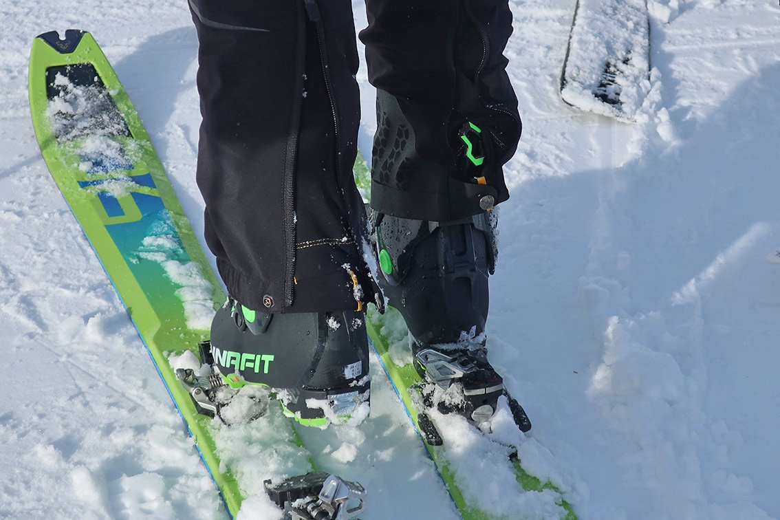 Die Schnallen – zwei Stück – werden im Grund gleich beim Anziehen richtig in den Abfahrts-Modus arretiert. Die obere Schnalle wird dann auf gemacht und geht so mit diesem Schuh normalerweise recht angenehm zum Gipfel. Oben schließt man dann nur die obere Schnalle und das Ultra Lock Band (ganz oben), mit zwei Handgriffen ist der Schuh abfahrbereit. Die Schnallen sind deutlich besser zu bedienen als beim Vorgänger, wirklich gut ausgedacht!