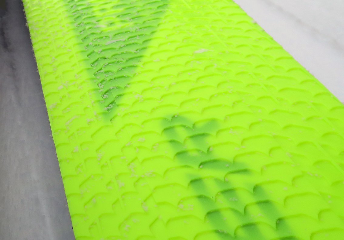 Da das Fell aus hartem PVC ist, bei dem die recht scharfen Schuppen den Rückhalt bilden, soll es nicht anstollen, da sich das PVC nicht mit Wasser vollsaugen kann. Beim Blick auf die scharfen Schuppen denkt man unweigerlich an die Abnutzung - was passiert, wenn diese mal stumpf sind? Die Schuppen sollen sich laut Christian Wimmer (Fischer) selbstständig beim Aufsteigen nachschärfen, scharfe Steinkanten sollte man, wie mit anderen Fellen auch, aber meiden.