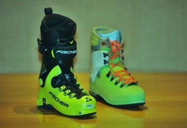 In früheren Zeiten, wo die Mehrheit der Alpinisten noch mit Schalenbergschuhen von Koflach oder Asolo unterwegs waren um Abenteuer an gefrorenen Wasserfällen bzw. Hochtouren in Kombination mit Tourenski zu erleben, war dies immer ein Kompromiss zwischen gut gehen oder gut schifahren. Die Schischuhe der damaligen Zeit, Drei bzw. Vierschnaller, waren höchstens modifizierte Alpin Skischuhe mit einer an die Sohle geklebten Vibramsohle. Wirklich zum gehen geeignet waren diese sogenannten modifizierten Skischuhe nicht und vom Gewicht erinnerten diese Schuhe eher an Taucherschuhe mit Bleieinlagen an den Sohlen. Wir fragten uns damals oft, wieso es nicht möglich ist in einem Schalenbergschuh eine Bindungsaufnahme von Dynafit zu integrieren - denn man konnte eigentlich nur zwischen Cholera und Pest wählen, entweder einen leichten Schalenbergschuh mit schwerer Bindung und schlechten Fahreigenschaften oder einen schweren Tourenskischuh mit leichter Dynafitbindung - gut geeignet zum skifahren, aber nicht zum gehen und klettern.