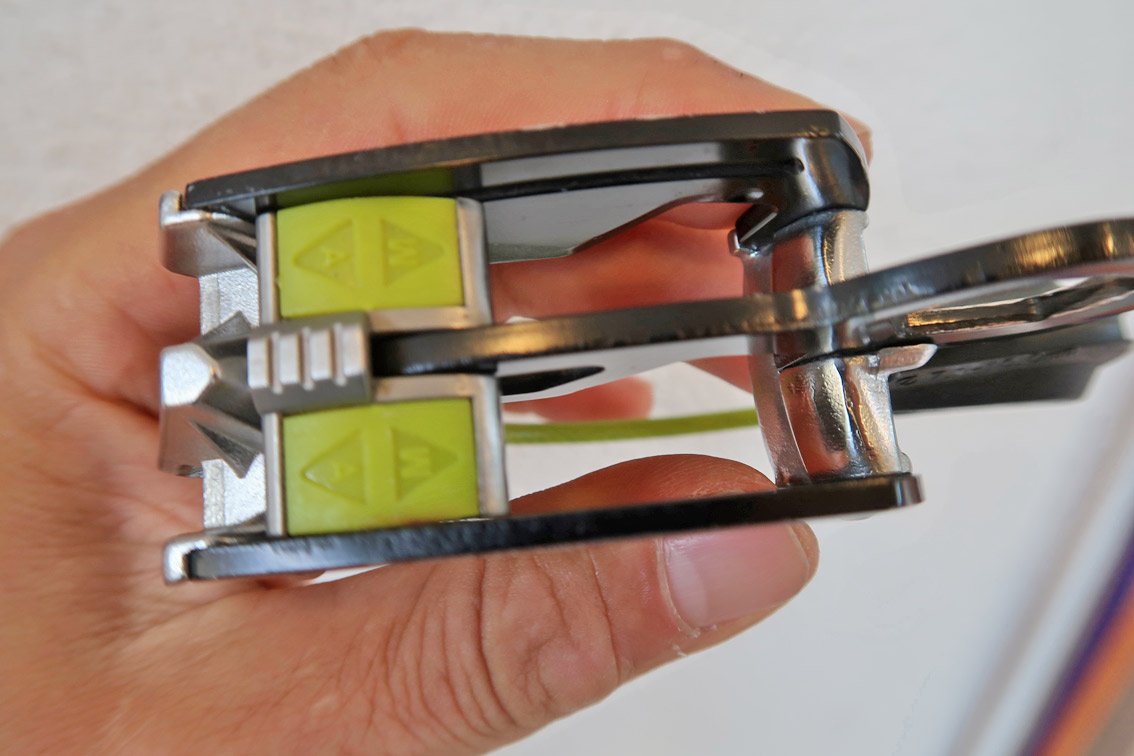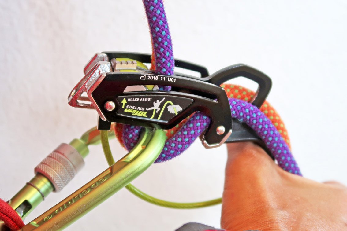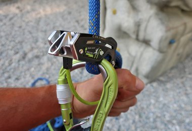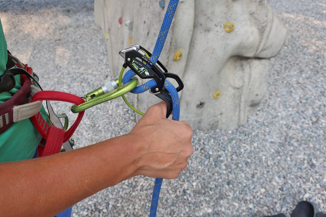 Das Giga Jul ist quasi ein Tuber, den man zu einem Autotuber (mit Blockierfunktion nach EN 15151-2) umstellen kann und das geht wirklich ganz einfach – durch das Verschieben eines kleinen Metallschlittens. Man muss natürlich anfangs schon recht genau darauf schauen, in welcher Stellung (welche Funktion) sich das Giga Jul gerade befindet. Mit der Zeit hat man den Dreh aber recht gut heraußen und fühlt sich sicher mit diesem Teil.