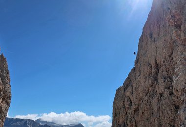 Das Giga Jul von Edelrid (klettern an der Fünffingerspitze, unten der Sellapaß).