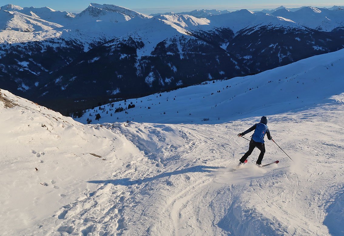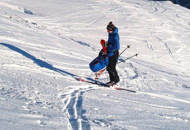 Was gleich einmal positiv auffällt sind die vielen Fächer und Zugänge, die der Haute Route 32 Skitourenrucksack hat. Diese sind noch dazu geschickt angelegt und recht leicht zugänglich. Es sind sieben Fächer (!), die man vor der ersten Skitour ergründen und dann füllen kann. Wirklich gut gelöst ist der doppelte Zugriff zum großen Hauptfach – dort komme ich entweder über den Rundzipp am Rückenteil oder durch eine zusätzliche Öffnung von oben hinein.