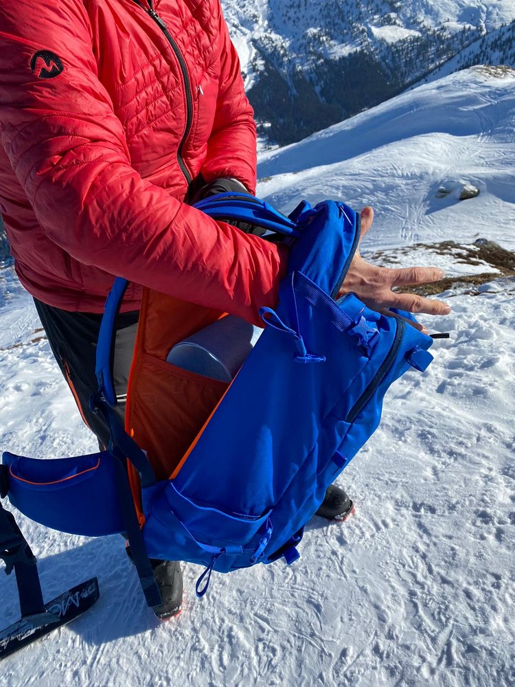 Bei unseren Skitouren mit dem Haute Route ist uns vor allem das gute Tragessystem aufgefallen, welches angenehm am Rücken anliegt. Aber auch der Zugang zu den Fächern ist ideal – so kann man z.B. bei geschlossenem Hüftgurt den Rucksack nach vorne drehen und aus dem großen Hauptfach, welches durch den Rundzipp zugänglich ist, bei Bedarf z.B. dickere Handschuhe heraus holen. Im kurzen Video am Seitenende werden die Funktionen ganz gut auf den Punkt gebracht – mehr kann man auch wirklich nicht hinzufügen.