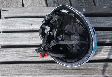 Der Ikon-Helm hat natürlich auch eine Stirnlampenhalterung, die zwei vordere Clips und einen elastischen Halter hinten umfasst – die Lampe kann so befestigt werden, ohne den Helm abzunehmen. Das Drehrad kann beim Verstauen des Ikon-Helmes im Rucksack etwas eingeklappt werden, so braucht der Helm weniger Platz. Farblich gibt es sowohl beim Herren als auch beim Damen-Modell drei Möglichkeiten: Herren - grey, water blue und white; Damen fuchsia, jade green und white