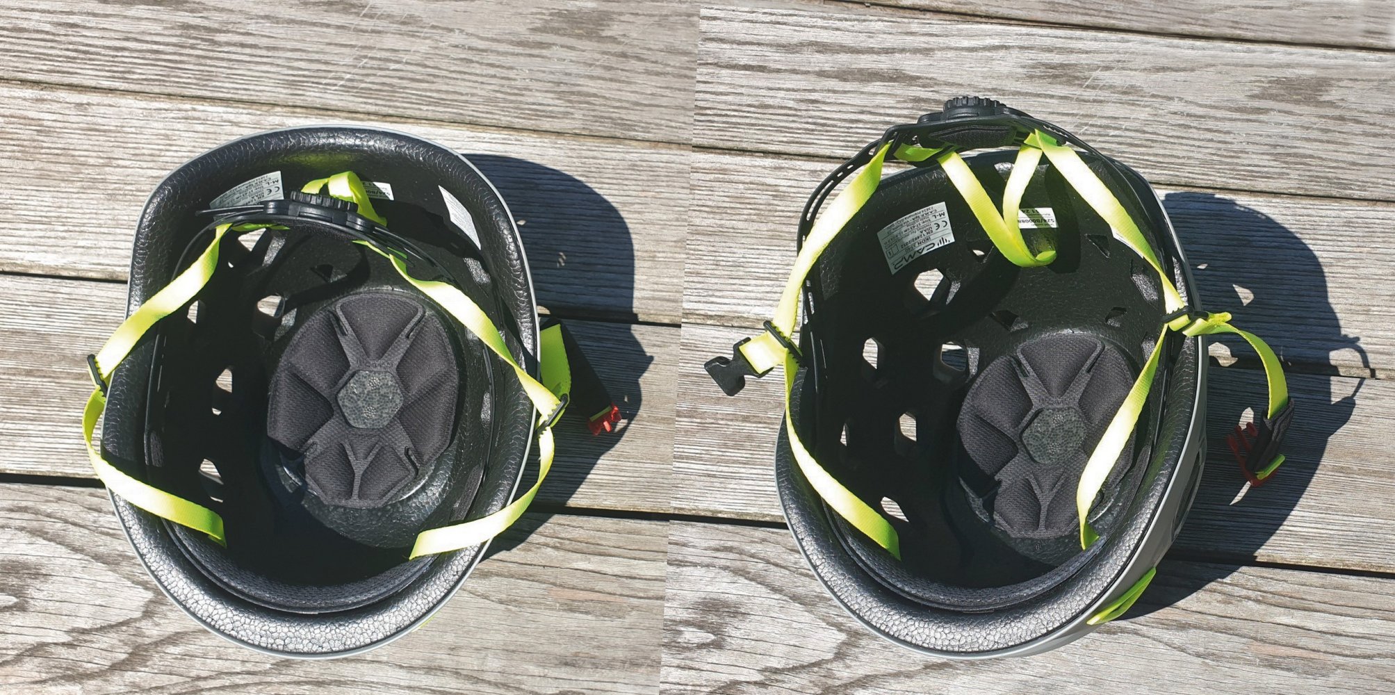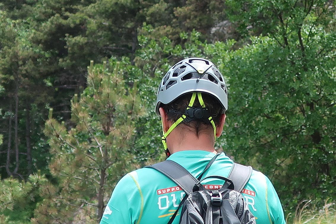 Die vielen Lüftungsöffnungen sind so klein und von der ABS Außenschale geschützt, dass kein Stein durchkommt, spenden aber gleichzeitig an heißen Tagen viel Luft. Innen ist der Ikon-Helm weich gepolstert und die Polsterung kann auf Wunsch auch an die Kopfform angepasst bzw. verstärkt werden. Besonders praktisch das Verstellrad am Hinterkopf, mit dem sich der Ikon-Helm – auch während der Tour! - nur mit einer Hand sehr gut auf jede Kopfbreite anpassen lässt. Die seitlichen Riemen lassen sich beim Ohr und Kinn verstellen und sorgen dafür, dass der Helm fest sitzt. Die Passform des Camp Ikon-Helms ist mit diesen einfachen und sehr effizienten Verstellmöglichkeiten sehr gut!