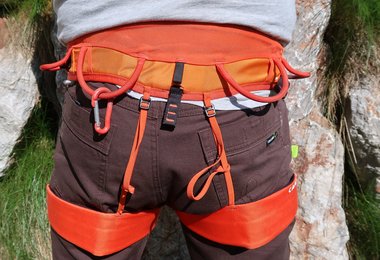 Beim Klettern und Hängen (Abseilen oder Standplatz) ist der Gurt sehr bequem, das dürfte mit der guten Ergonomie und Ausführung der Hüftpolsterung zu tun haben. Durch diesen Umstand wird der Jasper CR 4 zum erste Wahl-Gurt bei Mehrseillängen und Big Walls. Der Griff zu den Expressschlingen funktioniert wie gewohnt perfekt, die Materialschlaufen dürften also am richtigen Platz sein. Neben der Einbindeschlaufe vorne gibt es hinten eine kleine Chalkbagschlaufe und noch eine „Schwerlast“-Schlaufe, die vor allem bei Bigwall-Gurten dazu gehört.