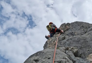 Der Rucksack macht, und das hat uns verwundert, einen sehr soliden Eindruck und hat bis dato sämtliche Torturen (Kamin, enge Rissrinne, Verschneidung bei der man sich mit dem Rücken anlehnen muss etc.) ohne Schrammen überstanden - andere Modelle der Konkurrenz gingen da schon deutlich früher K.O.. Im Vergleich zu den Trailrunning Modellen wurde beim Apex Climb ein etwas dickeres Rucksackmaterial genommen und das war die richtige Entscheidung (lieber ein paar wenige Gramm mehr als bei der zweiten Tour schon kaputt).