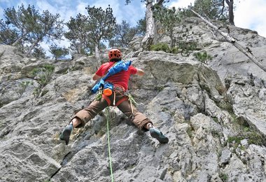 Zum Klettern an sich gibt es nicht viel zu sagen – der Schuh ist weich und man hat viel Gefühl auf den Tritten. Nur bei kleinen Leisten steht es sich naturgemäß mit dem weichen Kletterschuh nicht so gut, da sich die Sohle etwas wegbiegt. Wir setzten den Schuh vor allem beim Training in der Halle oder bei athletischen Touren im Freien ein. Aber auch bei leichten Mehrseillängenrouten hatten wir den Mad Rock Haywire schon mit dabei, wegen der guten und angenehmen Passform war das der ideale Begleiter.