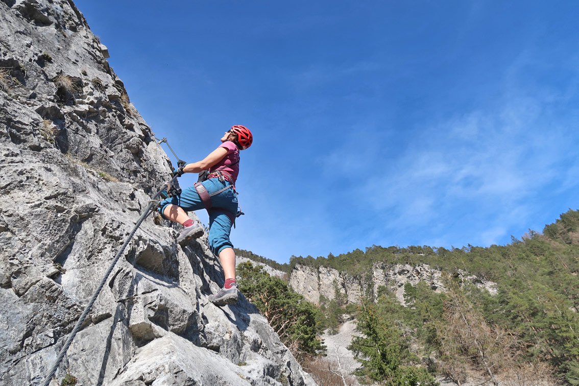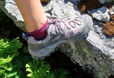 Grundsätzlich muss man sagen, dass der Ducan Low beim Gehen seine Vorteile voll ausspielt. Man ist wegen der angenehmen Vorderfußpassform immer sehr entspannt unterwegs. Einzig auf ganz kleinen Felstritten, wie das bei unseren Klettersteigtouren der Fall war, würde man sich einen etwas knapperen Zehenbereich wünschen.