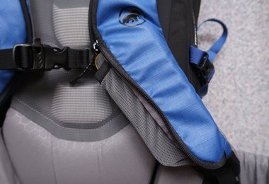 Am Hüftgurt befindet sich außerdem eine praktische Tasche mit Reißverschluss. Diese ist ideal für kleine Gegenstände, die schnell griffbereit sein müssen, wie beispielsweise eine Kompaktkamera, Taschentücher, Sonnencreme oder Bargeld. Abgerundet wird das Angebot an Verstaumöglichkeiten mit einer Tasche am Schulterträger. Diese Tasche wäre ideal für die Unterbringung des Telefons. Leider ist sie selbst für mittelgroße Smartphones viel zu schmal geraten. Ein kleines klassisches Handy passt jedoch hinein.