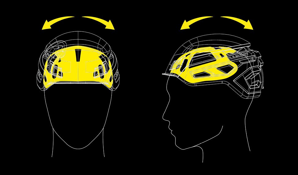Das multidirektionale Aufprallschutzsystem MIPS ist eine Technologie, die ein Verschieben des Helms relativ zum Kopf ermöglicht und so einen besseren Schutz des Gehirns vor Rotationsbewegungen durch einen seitlichen Aufprall bietet. MIPS wurde von biomechanischen Spezialisten am Royal Institute of Technology (KTH) in Stockholm, Schweden, entwickelt. MIPS ist eine Form der Gleitflächentechnologie, d.h. ein MIPS-Helm besteht aus zwei Schichten, die sich gegeneinander drehen und die Rotation der hirneigenen Zerebrospinalflüssigkeit nachahmen, die der natürliche Schutz des Körpers gegen schräge Stöße ist. Die Außenschicht des Wall Rider MIPS besteht aus dem gleichen stoßdämpfenden EPP-Kern wie beim herkömmlichen Wall Rider. Sie ist über ein elastomeres Befestigungssystem mit einer reibungsarmen Innenschicht verbunden, die auf dem Kopf des Bergsteigers ruht. Bei einem Sturz absorbiert die Außenschale des MIPS-Helms den linearen Stoß, während sich die Innenschicht ein paar Millimeter dreht und den Rotationsstoß absorbiert. Diese kleine Drehung der Innenschicht gegenüber der Schale führt zu einer signifikanten Reduzierung der Kräfte auf das Gehirn, was die Wahrscheinlichkeit von Gehirnerschütterungen und anderen Hirnverletzungen reduziert.