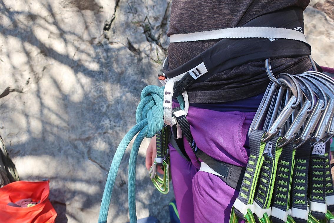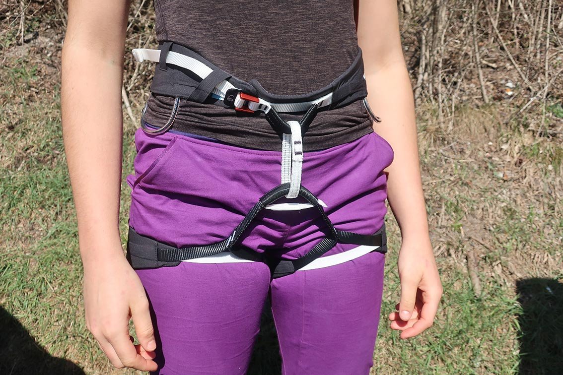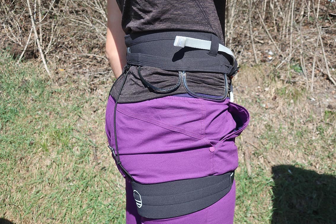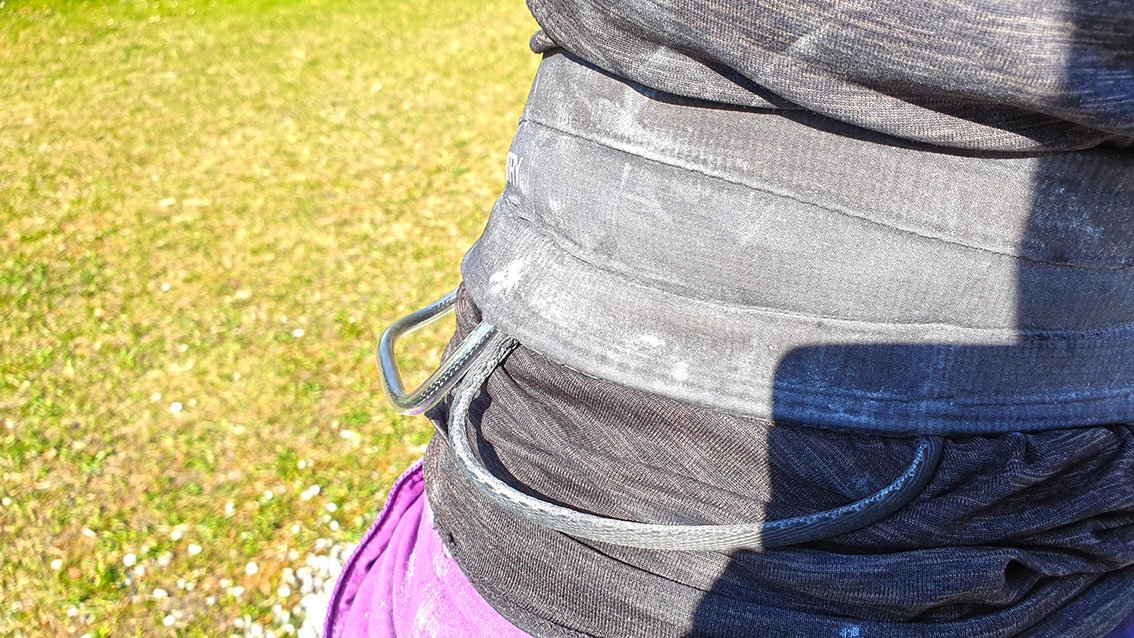 Einzig kleiner Kritikpunkt – wenn man bei so einem gelungenen Gurt überhaupt etwas Beanstanden darf – ist die Gummifixierung der Beinschlaufen. Die ist oben am Hüftgurt nur durchgezogen und rutscht so anfangs etwas ungewohnt in manchen Positionen hin und her. Man gewöhnt sich aber schnell daran und kann bei Bedarf auch mit einem einfachen Knoten Abhilfen schaffen.