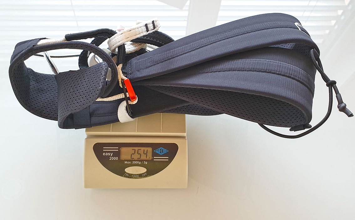 Natürlich ist ein geringes Gewicht bei Hüftgurten nicht das wichtigste Kriterium, der Gurt muss angenehm anliegen und funktionell sein. Um es vorweg zu nehmen – auch das haben die Wild Country Entwickler beim Mosquito geschafft. Der Gurt lässt sich gut anziehen, mit einer einzigen, leichten Aluminiumschnalle ist der Hüftgurt dann auch fixiert und sitzt wie angegossen.