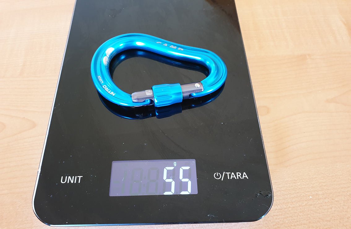 Die dünne SphereLock-Nase und die schmale Karabinerform des Nitro Lock HMS-Karabiners machen es aber möglich, man kommt oft in enge Laschen, Ösen und Zwischenräume noch gut hinein. Der Nitro Lock ist noch dazu für seine Größe extrem leicht – nur 56 Gramm bringt er auf die Waage.