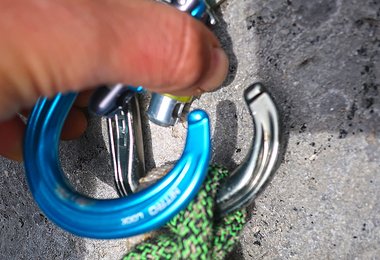 Wer kennt das nicht, man kommt bei einer Mehrseillängenroute zum Standplatz, zwei Bohrhaken mit einer fetten, alten, labbrigen Seilschlinge verbunden – und wie kommt jetzt der Karabiner in die Bohrhakenöse? Dünne, schmale Karabiner zwängt man oft noch in die Bohrhakenlasche hinein, mit vielen gängigen HMS-Karabinern geht da meist nichts mehr.