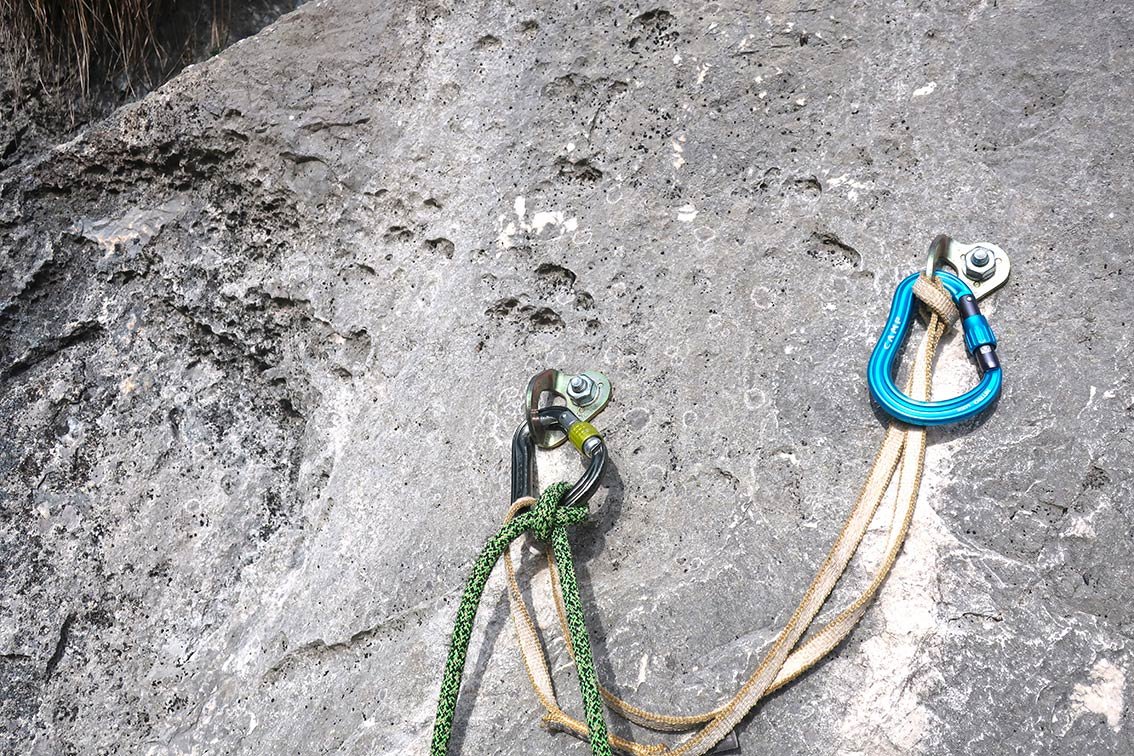 Der Camp Nitro Lock Karabiner an einem Standplatz.