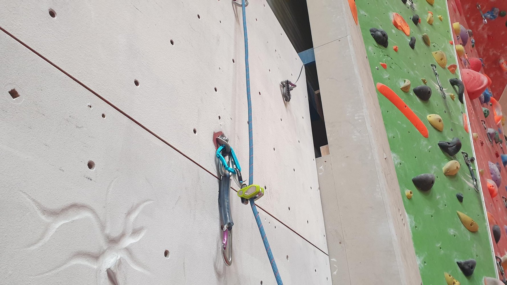 - wie beim Ohm auch eine Bremswirkung beim Sturz ins Gerät (1. Bohrhaken)