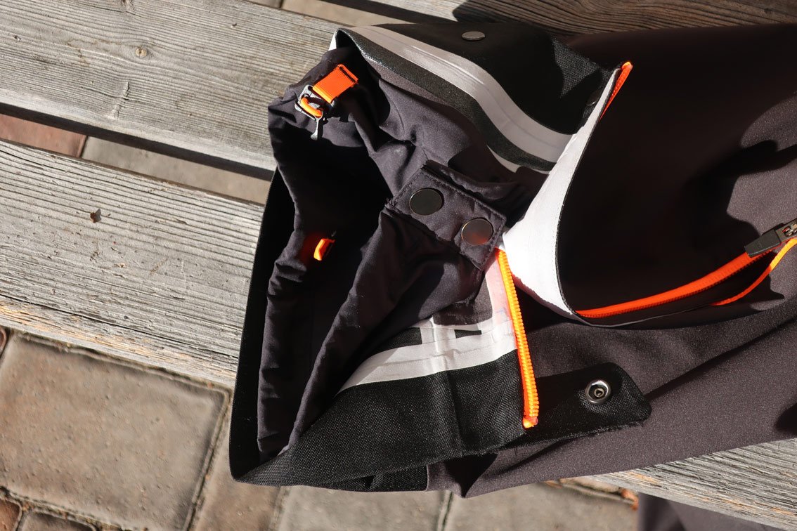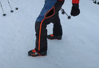 Am rechten Oberschenkel gibt es noch eine kleine Quertasche (mit kleiner Halterung für ein LVS-Gerät), sonst ist an der Hose aber wirklich nur das nötigste, was auch gut ist. Sie ist leicht, robust und sieht mit dem Neorosa Längsreißverschluss auch noch peppig aus. Die Hose bringt 430 g auf die Waage, ist wind- und wasserdicht und mit Stretchmaterial ausgeführt.