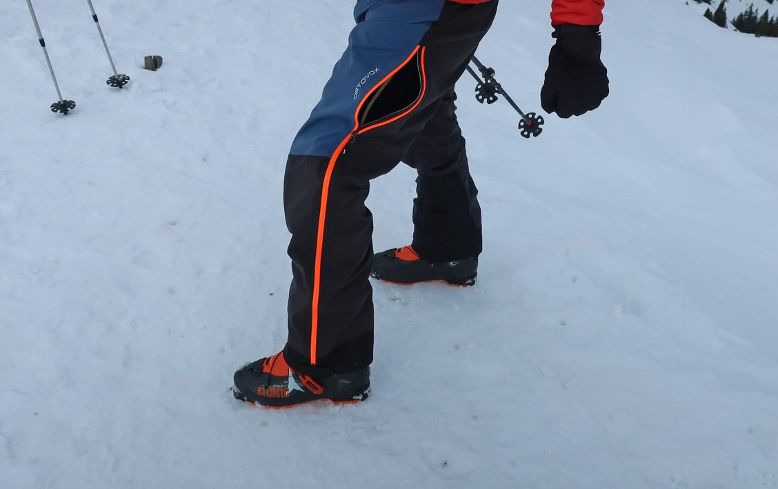 Die Ortler Pant ist durch ihre beiden langen Reißverschlüsse am Bein sehr gut belüftet. Mit dieser Hose kann man fast alles machen (außer man ist jetzt ein Skitourenrennläufer auf Wettkampfniveau). Neben den langen Reißverschlüssen ist noch die angenehme Verarbeitung (mit Merino-Mesh-Einsatz) im Hüftbereich als Highlight zu erwähnen - die Hose sitzt wirklich angenehm und rutscht nicht (bei Bedarf lassen sich aber Träger integrieren).