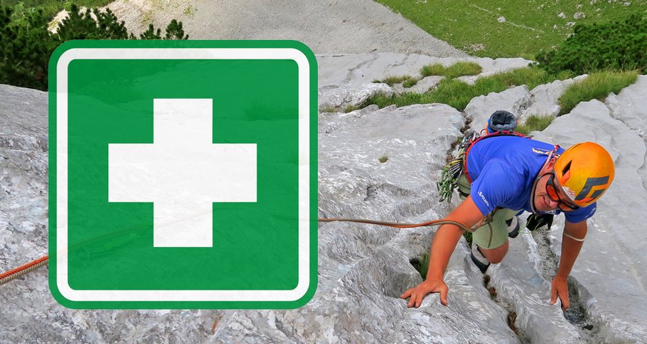 Meist kommt es unverhofft und geht ganz schnell – ein Stein fällt aus großer Höhe und trifft den gerade sitzenden Kletterpartner am Oberschenkel oberhalb des Knies. In sekundenschnelle verfärbt sich die gelbe Kletterhose in großflächiges Rot. Nur eines der vielen Unfallszenarien, die beim Klettern oder Bergsteigen auf einen zukommen können, dafür ist es wichtig, zumindest etwas an medizinischer Erstversorgung dabei zu haben.