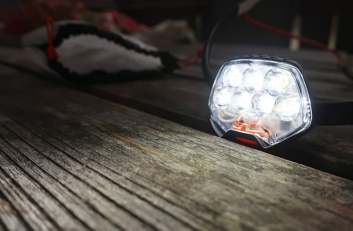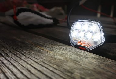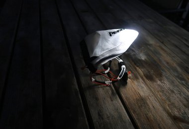 Die Iko Core sitzt fest am Kopf, man kann die Lampe – besser gesagt den fixen Gummi – durch einen flexiblen Gummizug noch etwas fixieren, so dass die Lampe sehr gut hält. Das vordere LED-Element hat 7 LED‘s, die bei Bedarf bis zu 500 Lumen von sich geben. Durch einen kleinen, aber sehr gut bedienbaren Schalter lassen sich 3 Helligkeitsstufen einstellen - Max burn time mit 6 lm, 100 Stunden, Standard mit 100 lm, 9:30 Stunden und Max power mit 500 lm, 2:30 Stunden.