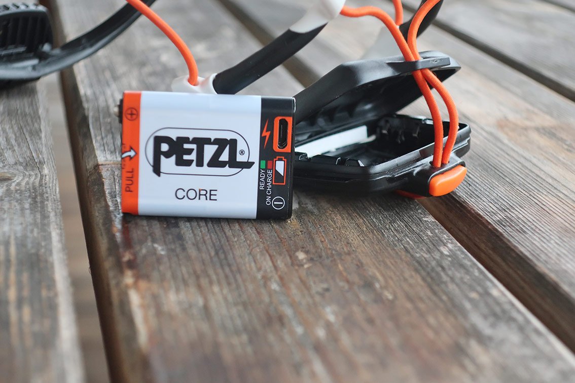 Betreibt man die Iko Stirnlampe mit 3 AAA Batterien, reduziert sich die Leuchtkraft und Leuchtdauer auf nur 350 Lumen Maximum (Max burn time 6 lm, 100 Stunden, Standard 100 lm, 8 Stunden und Max power mit 350 lm, 2 Stunden). Man sieht also gleich die Vorteile des Petzl Core Akkus (Lithium-Ionen-Akku mit 1250 mAh), neben der Wiederauflademöglichkeit mit USB (ca. 3 Stunden Ladedauer) bringt dieser auch deutlich mehr Leistung als die drei AAA Batterien.
