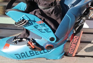 Der Quantum Free Asolo Factory 130 lässt sich so viel einfacher für die Abfahrt verschließen – beim Aufstieg hat man aber immer noch die sehr guten Vorteile des Zwei-Drehgelenk-Systems. Auch der Schaft hat beim Quantum Free Asolo Factory 130 - gleich wie beim ersten Quantum – zwei PVC-Manschettenteile, welche den Unterschenkel bei der Abfahrt sehr gut fixieren. Man geht also bergauf sehr komfortabel (mehr als 65° Bewegungsradius) und hat bei der Abfahrt deutlich mehr Halt als bei anderen, aufstiegsorientierten Schuhmodellen.