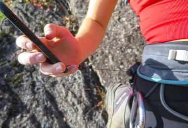 Fazit bergsteigen.com: Das Reeloq-System ist eine durchdachte Absturzsicherung für das Smarthphone, gut gemacht, mit verschiedenen Anwendungsmöglichkeiten. Wer sein Handy beim Toposchauen oder Fotografieren nicht verlieren will, sollte sich das Reeloq-System mal genauer anschauen!