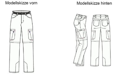 - zwei Reißverschlusstaschen an den Oberschenkeln