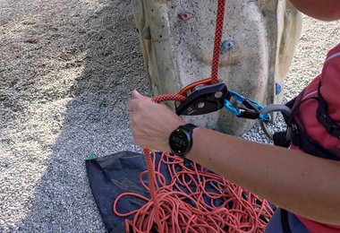 Ein eigenes Seil für die Kletterhalle - für viele Kletterer sicher eine Überlegung wert. Da unsere Seile stark unter der Abnutzung am Kletterturm (dort läuft das Seil oben immer über eine runde, raue Felskante) oder in der Kletterhalle leiden, haben wir uns das Tendon Indoor 9,8 Einfachseil genauer angeschaut. Mit 9,8 Millimetern Durchmesser ist das Seil eine Spur dicker als unsere Seile für das Alpin- bzw. Sportklettern, das macht sich vom Handling her aber kaum bemerkbar. Sowohl mit dem Grigri als auch mit dem Neox-Sicherungsgerät geht das Seilnachgeben gut von der Hand. Wir haben sogar das neue Ohmega (ein neuer Widerstand für den Gewichtsunterschied zwischen Sicherndem und Vorsteiger) damit in Verwendung und auch damit gibt es kein Problem.