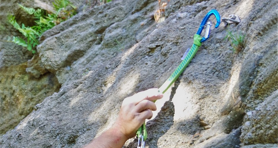 Bei einer Verlängerung kommt es auch auf die Länge an. Bei anderen Herstellern gibt es 30 cm, 45 cm und 50 cm im Portfolio. Wobei man sich mit einem längeren Modell natürlich etwas einfacher tut, den rettenden Bohrhaken von weit unten zu klippen. Climbing Technology Tricky kommt mit 35 cm auf den Markt und das ist eher kurz, aber noch mit einer brauchbaren Reichweite, um sich bei zu hoch gesetzten Bohrhaken erfolgreich zu helfen.