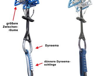Oft hören wir das Wort „Dyneema“ - ach ja, da war doch was und auch der Blick in die Gebrauchsanweisung zeigt schnell den Unterschied zwischen normalen und ultraleichten Camalots auf: Die Schlingen (egal ob Nylon oder Dyneema) müssen laut Gebrauchsanweisung genau genommen nach 10 Jahren ausgetauscht werden, da das beim Ultralight Camalot nicht geht - die Schlingen sind mit Plastik umhüllt, welches das Dyneema Material vor UV-Strahlung schützt - müsste man sich nach 10 Jahren von seinem Leichtgewicht Cam verabschieden.