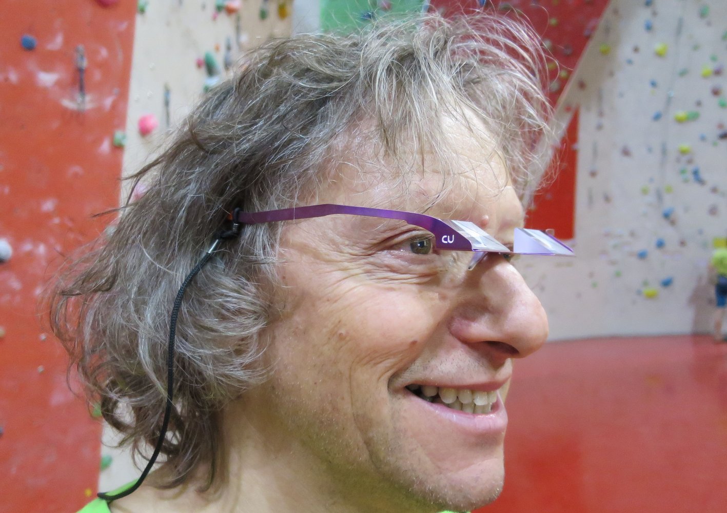 Was macht einen guten Sicherungspartner aus? Er behält den Kletterer immer im Blick und muss daher den „Kopf in den Nacken legen“. Dies kann zu Schmerzen und Verspannungen führen und sogar einen Gähnreflex auslösen, was durch „Mund auf und Augen zu“ zu einer echten Gefahr werden kann. Seit 2008 sind jedoch all diese unangenehmen Begleiterscheinungen Geschichte: Albi Schneider erfindet die Sicherungsbrille und erlöst damit den Klettersport.