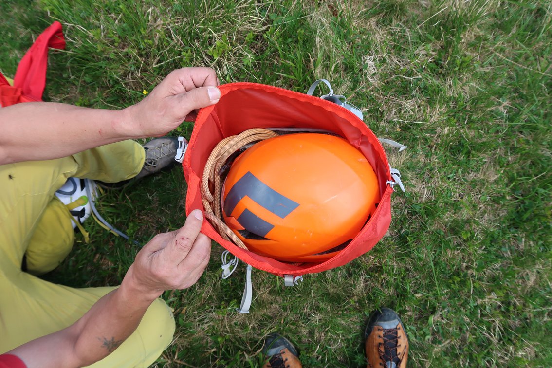 Wir haben den Rucksack bei einer 12 Seillängen Tour im Kaiser Gebirge getestet. Schuhe, Jacken, Apotheke und Trinkflasche waren hinten drin - und man spürt den Rucksack kaum am Rücken! Wenn man am Standplatz mal etwas braucht, lässt er sich gut mit einer Expressschlinge am Stand befestigen und man kann Problemlos etwas rausholen. Über die Robustheit des doch recht dünnen Rip-Stop Materials können wir nichts sagen - an den Seiten und am Boden ist dieses aber dicker ausgeführt. Irgendwie ist aber sicher, dass dünnes Material nicht so viel aushält wie dickes - irgendwo muss ja die Gewichtsersparnis herkommen.