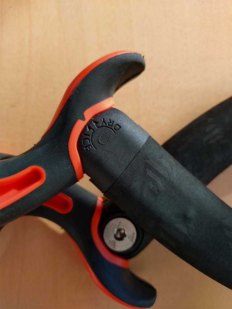 Kommen wir zum Herzstück des neuen X-Dream Eisgeräts: dem Griff. Dieser kann komplett abgenommen und gegen den Total-Dry-Griff ausgetauscht werden. Außerdem lässt sich der Griff im Winkel verstellen – etwas weiter nach hinten (DRY) oder etwas weiter nach vorne (ICE). Zusätzlich kann die mittlere Fingerauflage individuell angepasst werden: Position weiter oben oder weiter unten, unterschiedliche Längen der Fingerauflage (zwei Varianten liegen bei) oder man lässt sie ganz weg. Die Verstellmöglichkeiten der Fingerauflage sind wirklich sehr gut und einfach gelöst! Abschließend kann man unten den Spike (die Spitze) je nach Bedarf montieren oder abnehmen.