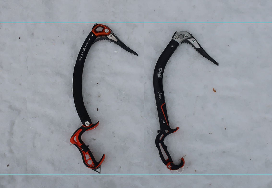 Im Mixedklettern hat das X-Dream (Eis-Version) die Nase jedoch klar vorn. Der längere Schaft bietet einen etwas besseren Hebel und es lassen sich damit auch höhere Hooks leichter erreichen. Die Total-Dry-Version konnten wir leider nicht testen, vermutlich ist diese im Mixedgelände noch einmal einen Tick besser. Der Griff des neuen Camp X-Dream ist im Vergleich zu seinem Vorgänger schmaler. Während man im alten Gerät beinahe „wie in einem Sofa“ hing, liegt der neue X-Dream-Griff beim Schlagen deutlich besser in der Hand und geht dabei mehr in Richtung Nomic-Griff.