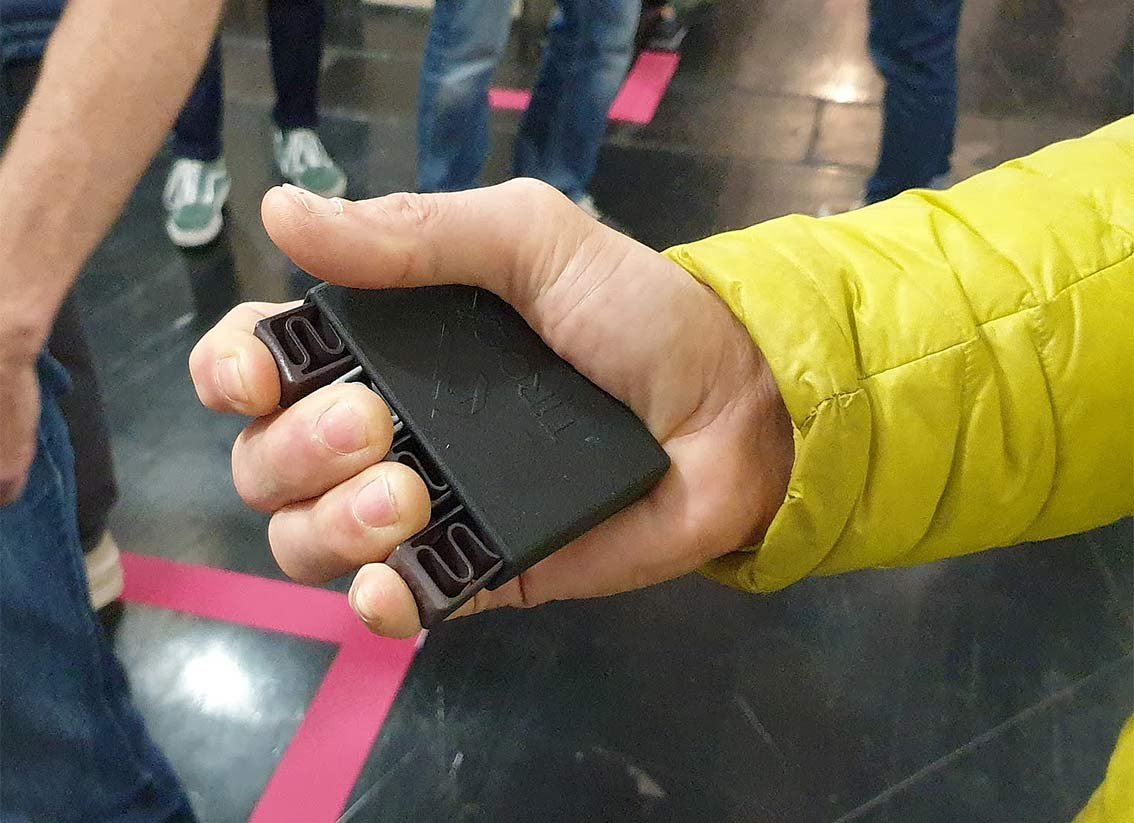 Der in Tirol entwickelte Fingertrainer Ti-Hand ist quasi ein Plastikgriff, bei dem man für jeden Finger einen Druckwiderstand - das sind verschieden starke PVC-Federn - hinein steckt. So ist es möglich, dass z.B. der kleine Finger - welcher naturgemäß nicht so viel Power hat - weniger stark belastet wird als der in der Regel deutlich stärkere Mittel- und Zeigefinger. Natürlich kann man das beim Ti-Hand Fingertrainer ändern, da man für jeden Finger eine andere Druckfeder wählen kann.