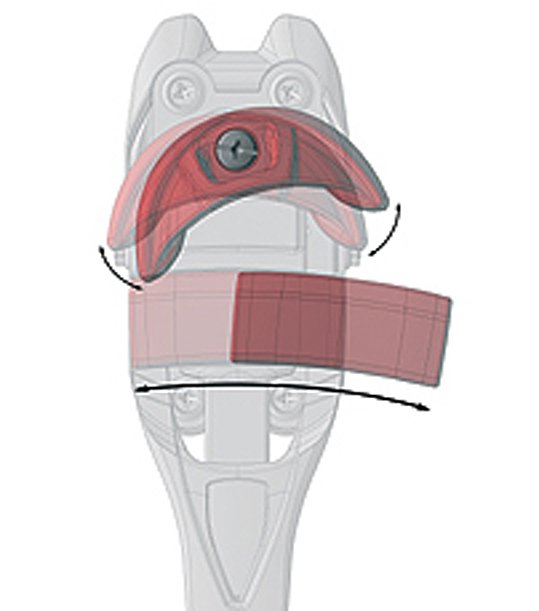 - Der breitere Gelenkträgere vorne, erhöht die Torsionsfestigkeit beim Aufstieg und die Kraftübertragung in der Abfahrt.
