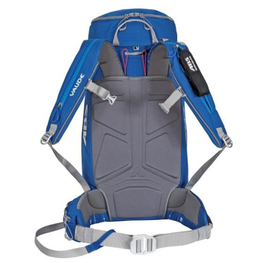 Die TÜV-zertifizierte und in der Praxis bewährte ABS®-Technologie mit Twinbag-System führt Vaude mit seiner jahrzehntelangen Rucksack-Kompetenz zusammen. Das Ergebnis: der erste ABS® Rucksack mit voll einstellbarem Rücken- und Trägersystem am Markt. Die von Vaude patentierte F.L.A.S.H. NT Trägerverstellung und ein variabler Hüftgurt ermöglichen bislang unerreichten Tragekomfort und optimalen Sitz. Unterstützt wird dies durch den Synergy Mold- Kontaktrücken aus viskoelastischem Schaumstoff und eine anatomisch geformte Rückenplatte, die ein lästiges Drücken der Kartusche im Innern verhindert. Auf Tour zeigt sich der ABScond sehr vielseitig, etwa durch variable Ski- und Boardbefestigung, Erweiterungsbalg, einen seitlichen RV-Zugriff und das außen liegende Safety-Fach. So ist das gesamte Equipment gut verstaut und Schaufel und Sonde im Ernstfall schnell greifbar.