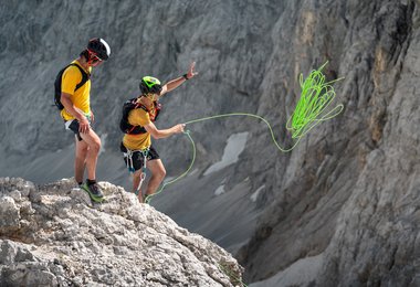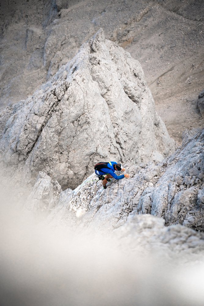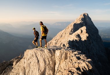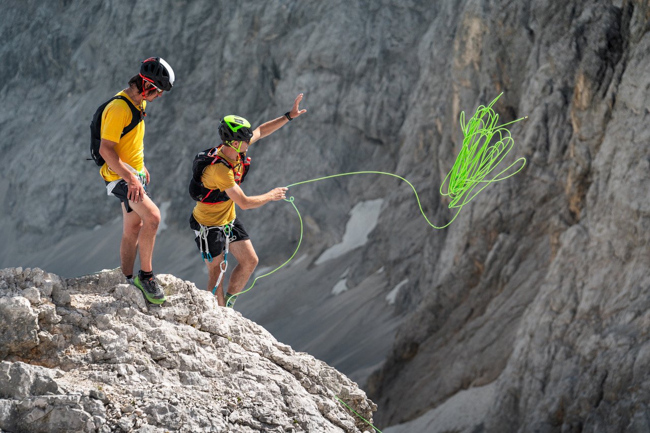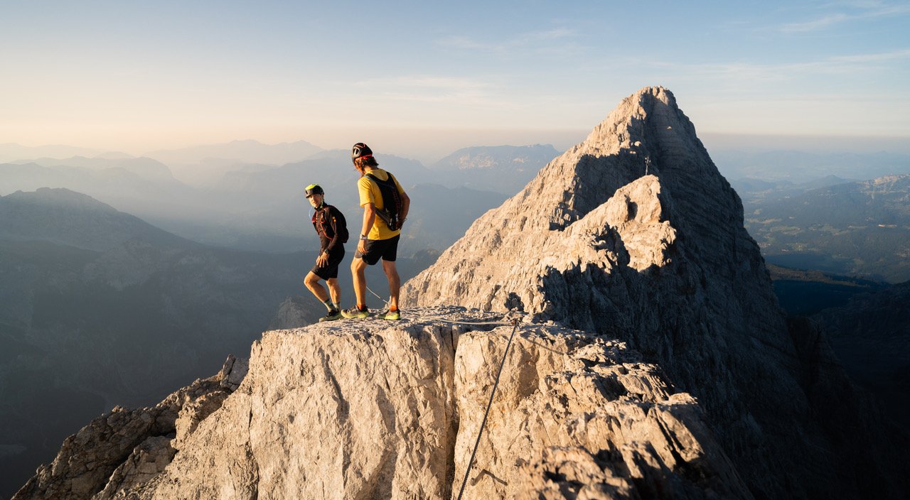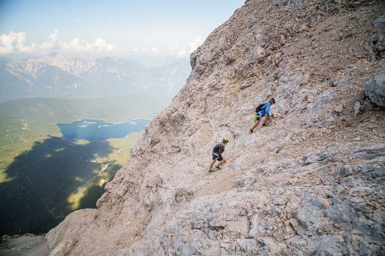 Die Watzmann Ostwand ist eine der bekanntesten Klettertouren in den Ostalpen und der ebenbürtige Bergführerweg Eisenzeit an der Zugspitze führt auf den höchsten Punkt Deutschlands. Beide Touren und die dazwischen doch recht beachtliche Strecke mit dem Fahrrad nonstop - diese mega Ausdauerleistung gelingt Alexander Scherl gemeinsam mit Simon Gietl in unter 21,5 Stunden. Start war mit der Hand im Königssee unterhalb der mächtigen Watzmann Ostwand und das Ziel das goldene Kreuz am Ende der sogenannten Eisenzeit auf der Zugspitze.