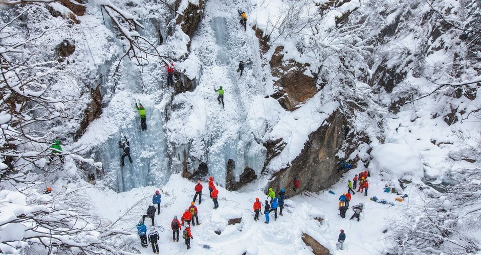 Bizarre Eisfälle, überhängende Boulder und zahlreiche Kletterstationen erwarten die Teilnehmer aus dem ganzen Alpenraum und dazu das neueste Material zum Testen.