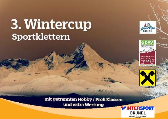 Boulderjam für U8 bis U16 mit Hobby und Profiwertung Nachwuchs-Kletterfest 15 Boulder je Klasse, 5 Versuche Wertung, Top, Bonus, Versuche Ausschreibung/Anmeldung: http://wintercup-Sportklettern.org
