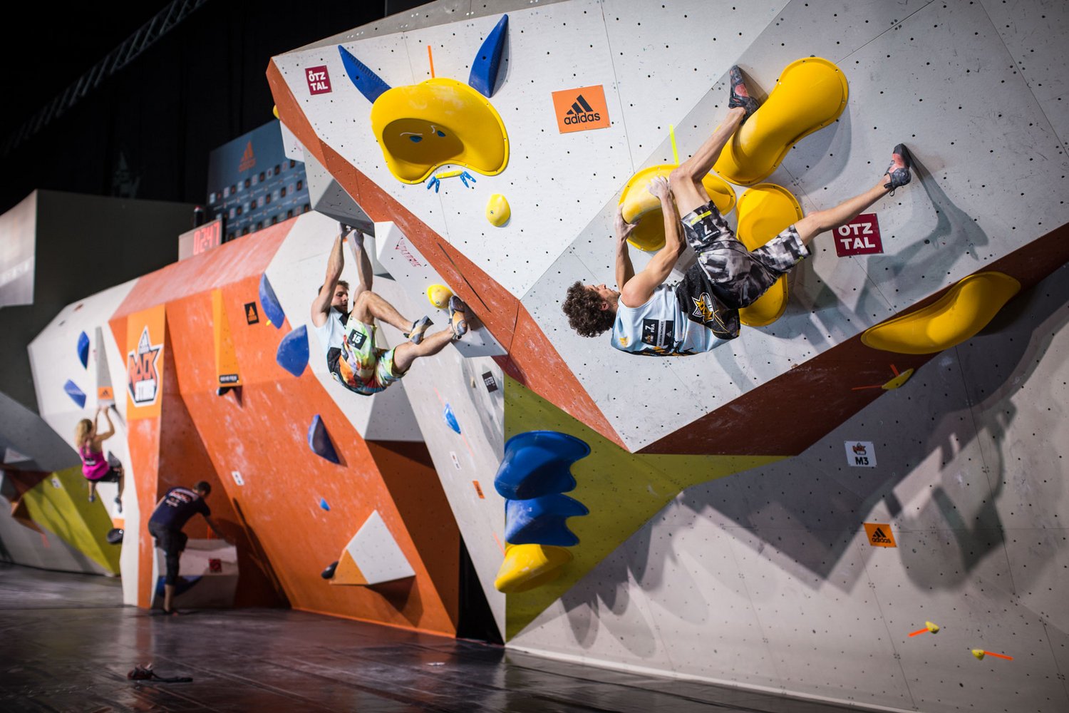 Die Qualität der Routen ist für einen guten Wettkampf entscheidend. Schließlich sollen die Kletterprofis bei adidas ROCKSTARS zeigen können, was sie draufhaben. Beweglichkeit, Kraft, Ausdauer, Dynamik, Kreativität und koordinative Fähigkeiten – all das möchte das Publikum gerne sehen. Außerdem sollen die Boulder selektiv sein. Im Idealfall schafft nur ein einziger Athlet die schwierigste Route. Die „Probleme“, so werden die kurzen Kletterrouten beim Bouldern auch genannt, werden in diesem Jahr von Laurent Laporte (FRA), Manuel Hassler (SUI), Reinhard Fichtiger (AUT), Matthias Woitzuck (AUT), Adam Pustelnik (POL), Tomasz Oleksy (POL), Robert Leistner (GER), und Felix Buchmann (GER) gesetzt. Insgesamt bringt es das internationale Team auf 100 Jahre Erfahrung im Wettkampfroutenschrauben.