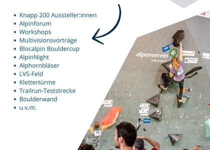 Die Alpinmesse mit Alpinforum ist Österreichs größte Bergsportmesse und findet gemeinsam mit dem Alpinforum vom 11. - 12. November 2023 statt.