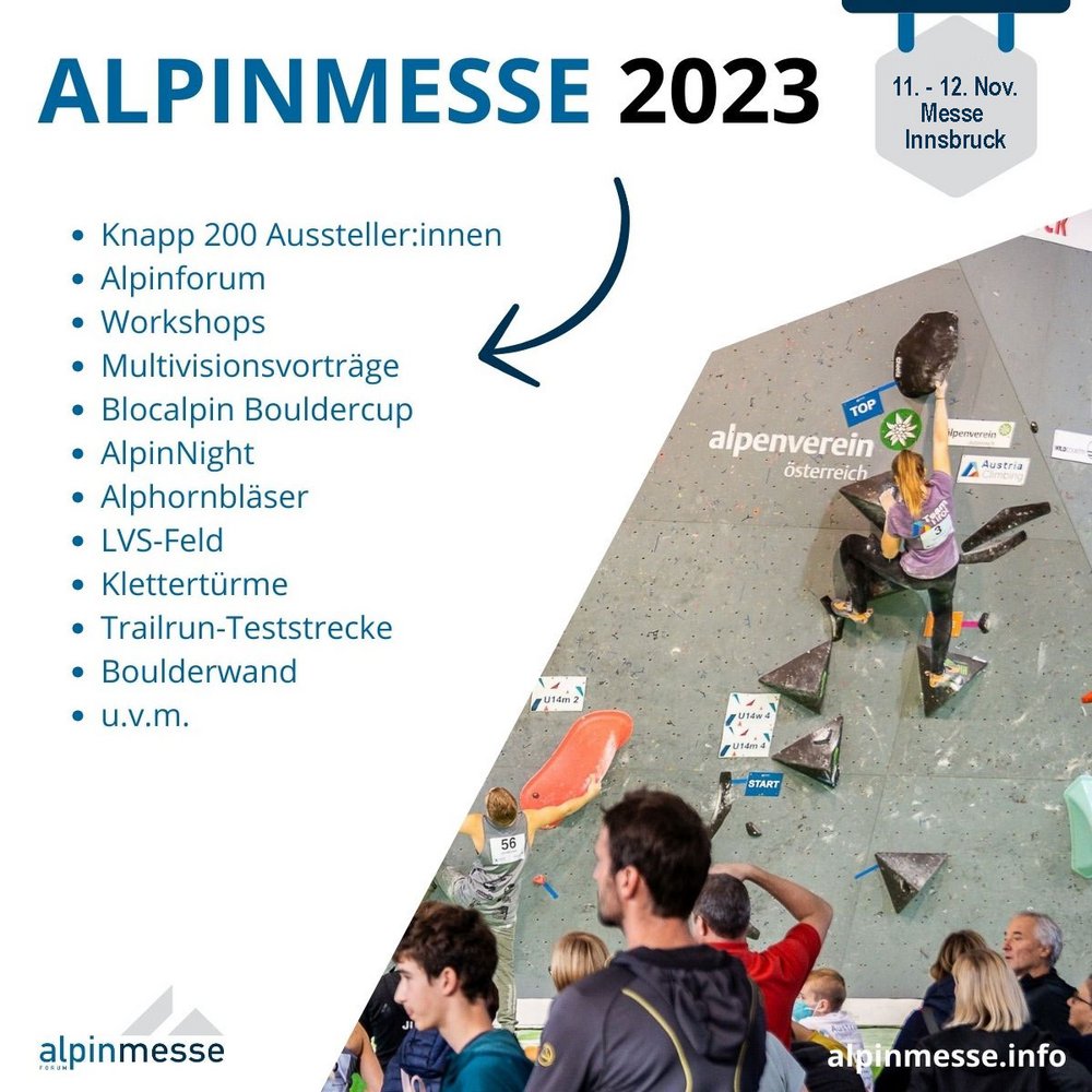 Die Alpinmesse mit Alpinforum ist Österreichs größte Bergsportmesse und findet gemeinsam mit dem Alpinforum vom 11. - 12. November 2023 statt.